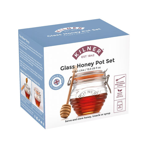 The Kilner® Ribbed Glass Honey Pot with Dipper, is ideal for storing and serving honey, treacle or syrup in style.