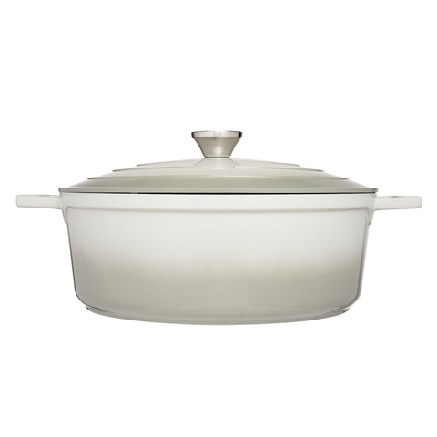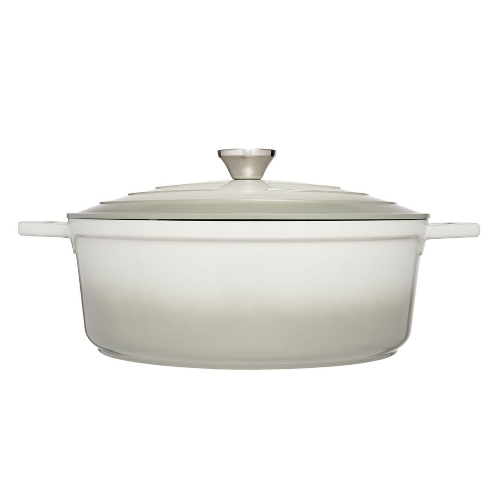 The Mary Berry At Home Oval Casserole Dish is made from cast aluminium and stainless steel for the utmost durability. With a pleasing sage green ombre finish, cast aluminium is much lighter than traditional cast iron, giving this classic casserole universal appeal. Ideal for serving up roasted vegetables, hot pots, casseoles, stews and lots more.